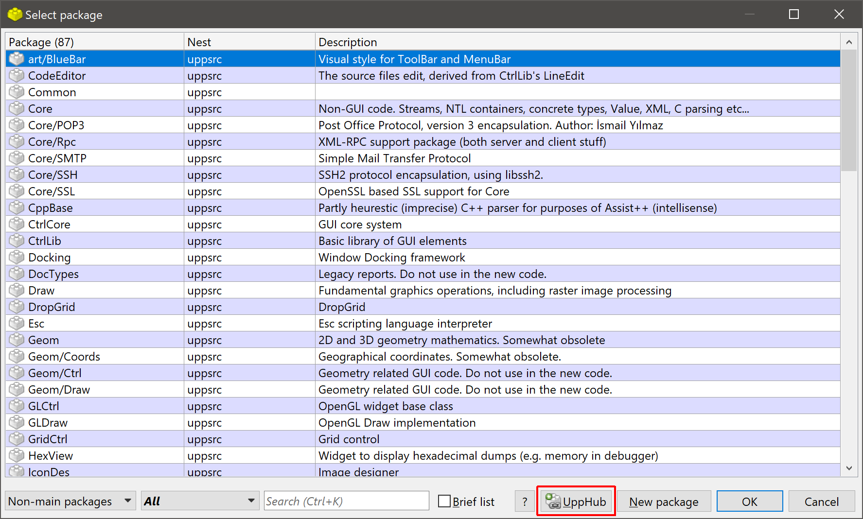 UppHub is accessible from TheIDE menu Setup/UppHub or from the package selection.