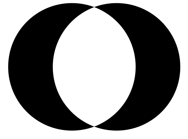sw.Circle(200, 200, 100).Div().Circle(270, 200, 100).EvenOdd().Fill(Black());
