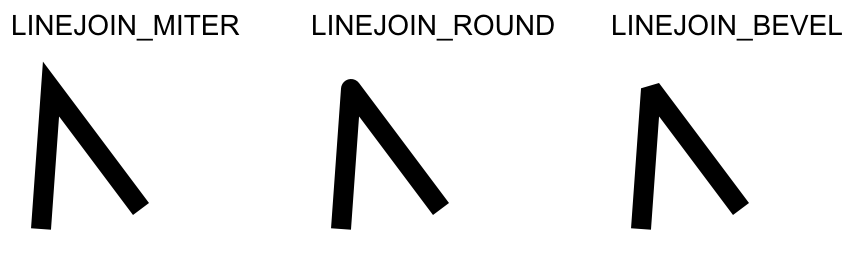 Sets the line joining mode. linejoin can be one of LINEJOIN_MITER, LINEJOIN_ROUND, LINEJOIN_BEVEL (LINEJOIN_MITER is default value):