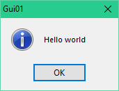 PromptOK function displays simply information dialog with the given parameter (in this case "Hello world").