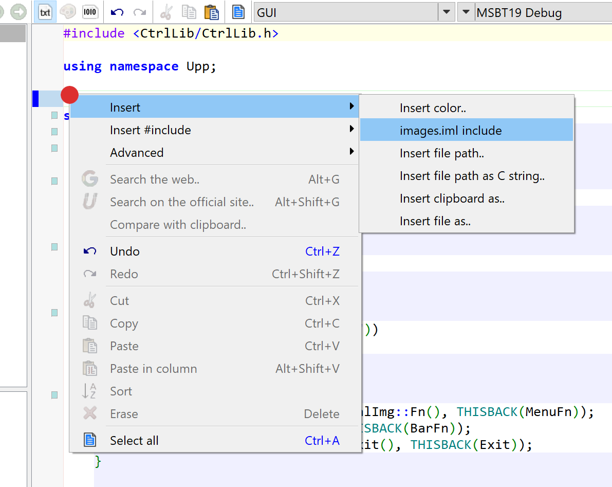 After creating GUI package, let's move to the coding part. To hide platform specific differences, U++ GUI application main function is defined using GUI_APP_MAIN macro: