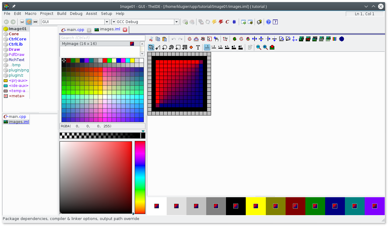In U++, predefined Images needed for application (e.g. as tool bar icons) are usually designed using TheIDE's Image designer.