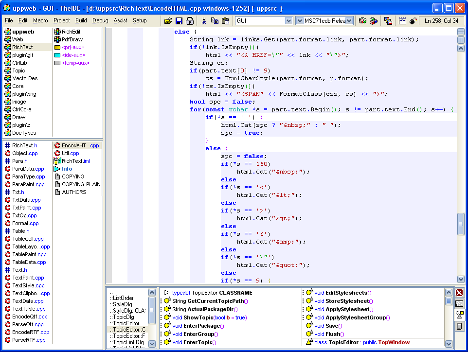 No list of U++ applications would not be complete without TheIDE itself. TheIDE is not only the U++ preferred development environment, but also a proof of concept of U++ design principles. TheIDE is being developed using TheIDE and U++ (creating interesting chicken-egg problem...).