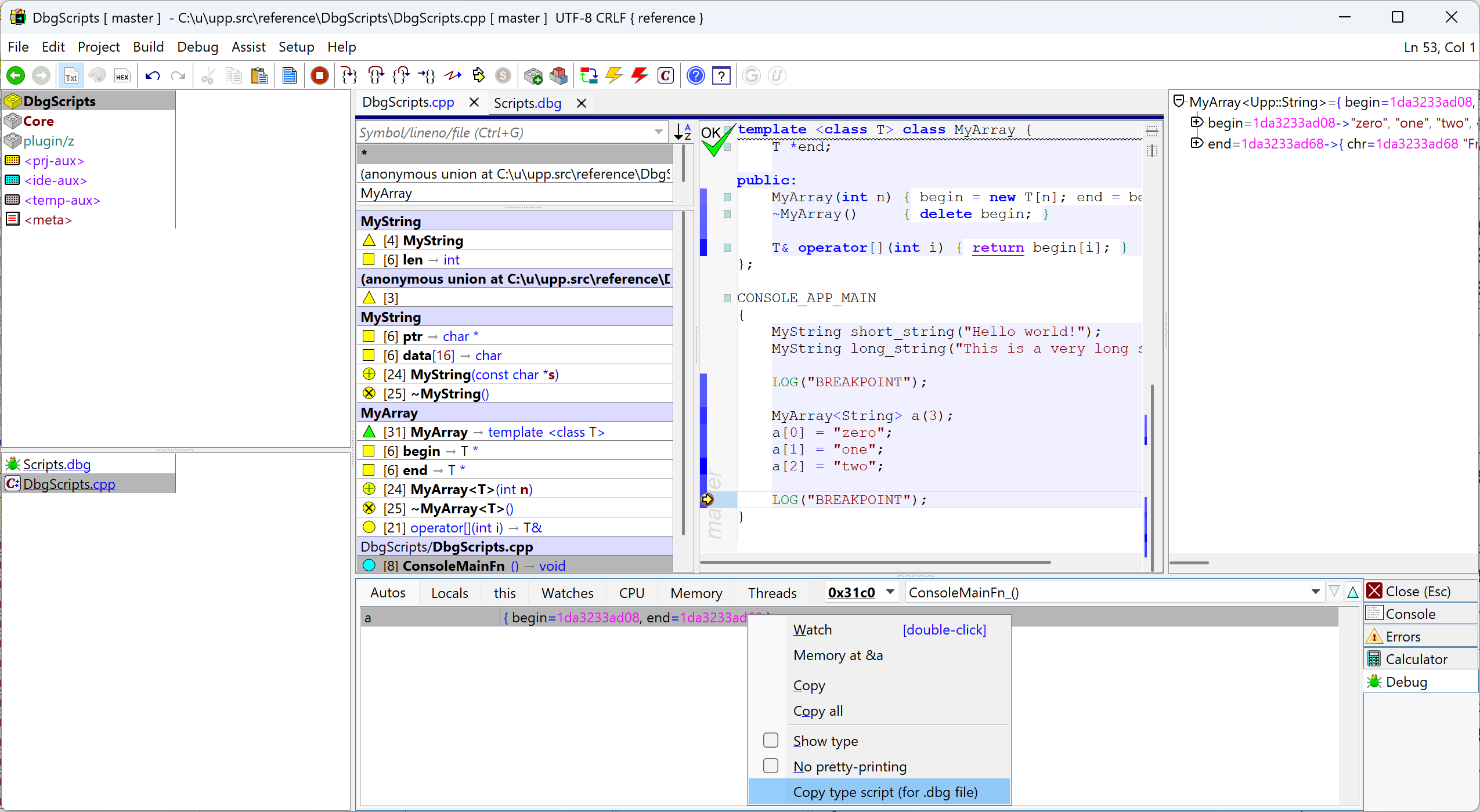 Debbuger pretty printing script