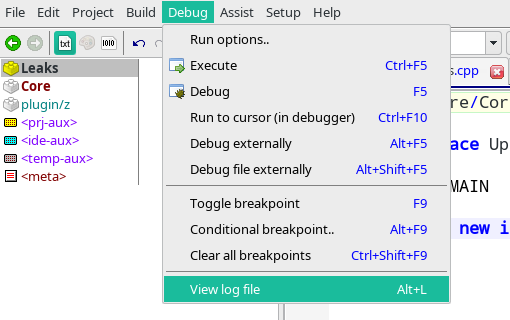 In "memory allocation serial number" each memory allocation has associated serial number (incremental). When U++ detects a leak, it dumps all leak blocks (note that sometimes you can resolve the problem just by examining its content) to standard .log file. You can see it in TheIDE by pressing Alt+L or by selecting "View log file" option from "Debug" menu: