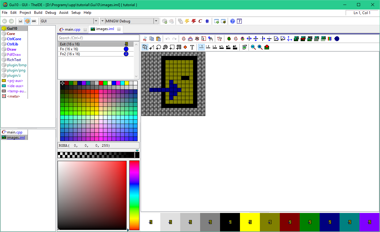 Image tutorial - here we move things related to images. We show how to create, use and embed icons directly in application.