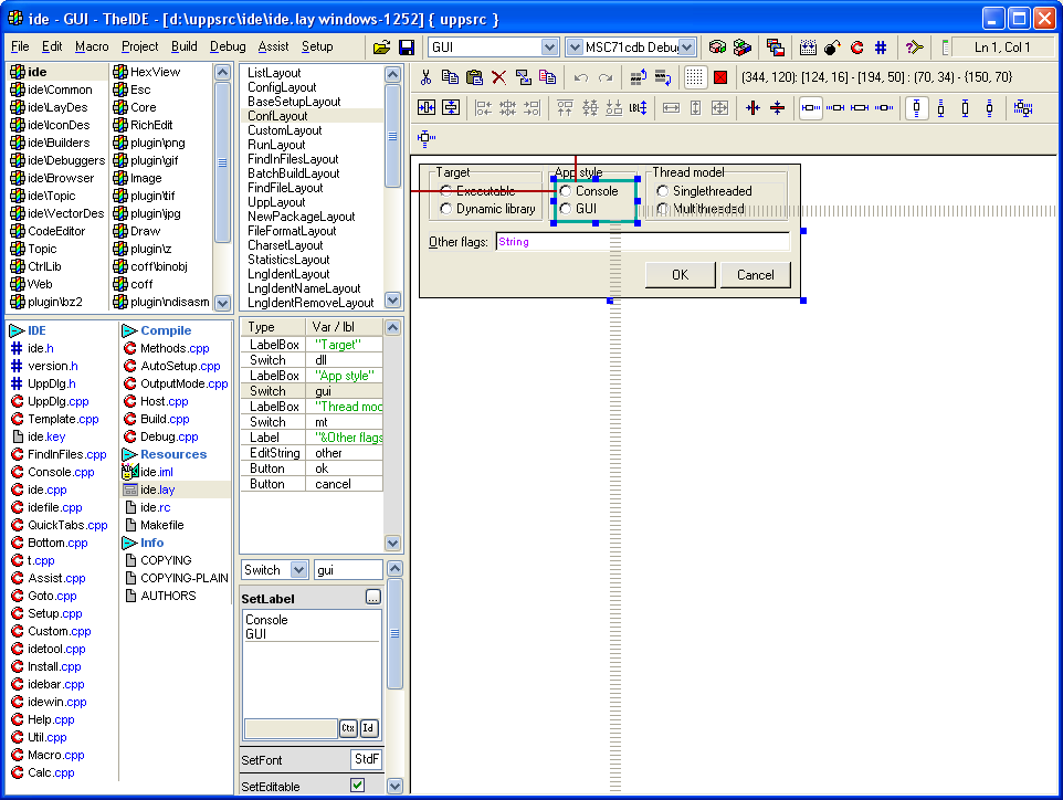 No list of U++ applications would not be complete without TheIDE itself. TheIDE is not only the U++ preferred development environment, but also a proof of concept of U++ design principles. TheIDE is being developed using TheIDE and U++ (creating interesting chicken-egg problem...).