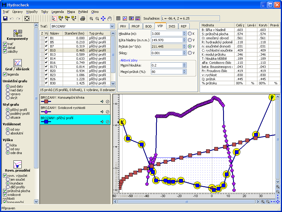Hydrocheck is a specialized software for analyzing river flow. A built in editor is used to define cross sections and other river parameters, which can be afterwards subjected to a multitude of hydraulic computations and for generation of various readouts. (see more detailed description here).